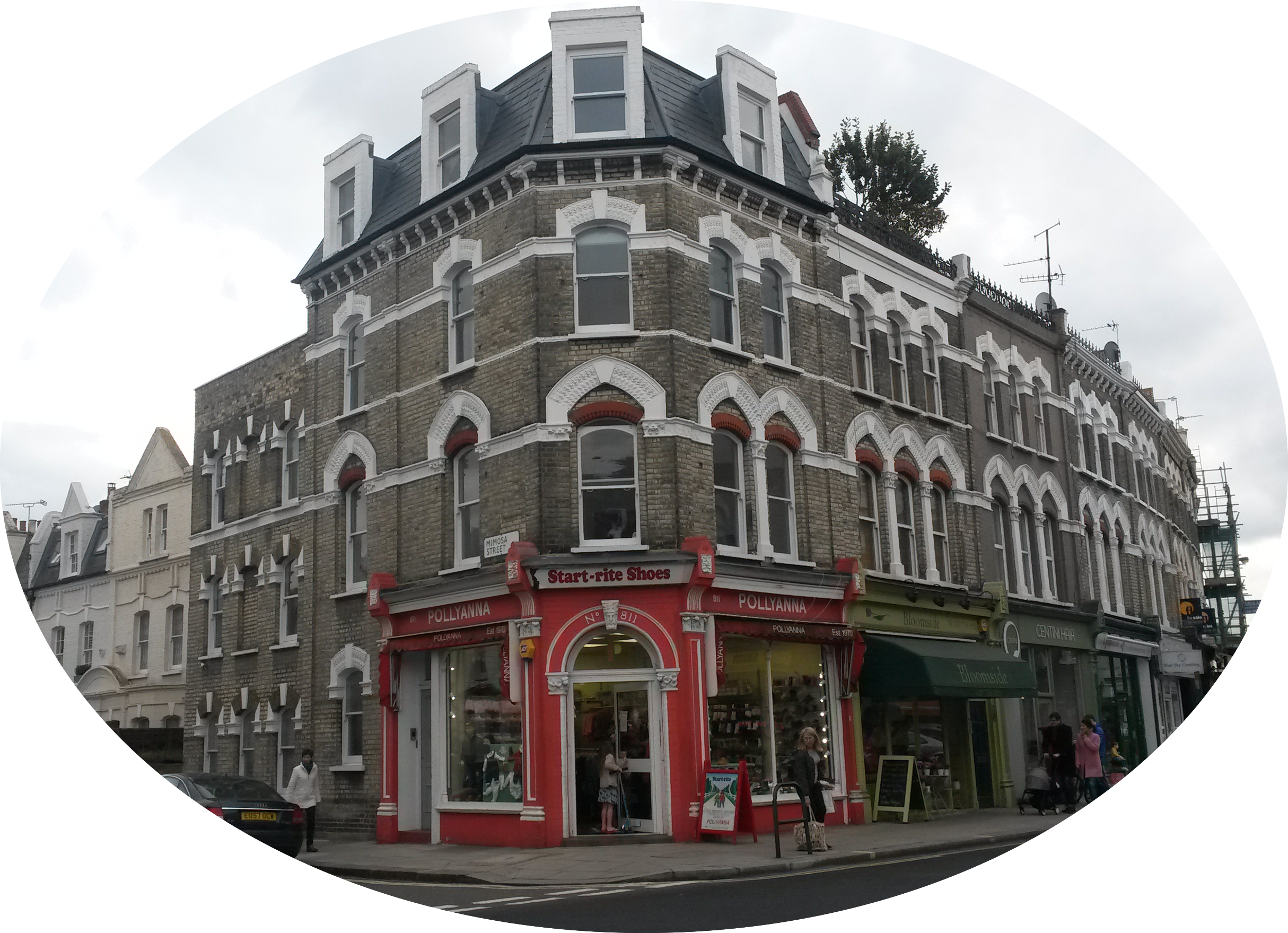 Pretensions to ladyhood begin with a girl’s first steps. Pollyanna Shoe Shop, Parsons Green